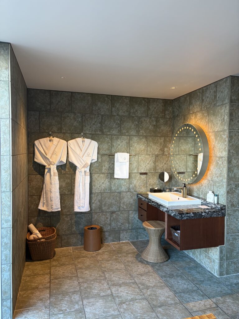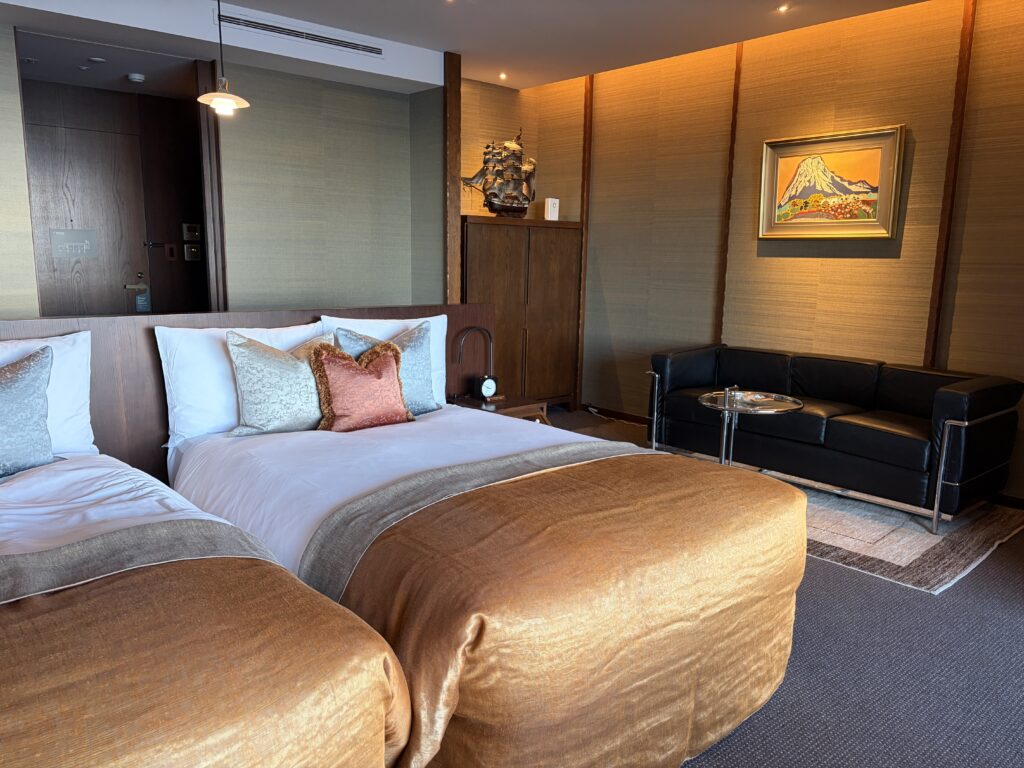 チェックインを済ませ、客室の扉を開けた瞬間、まず感じたのは「静けさ」でした。華美ではなく、けれど確かに上質。この宿は、空間そのものが語りかけてくるような、そんな大人のためのリゾートです。Perched on a hill overlooking Atami, THE HIRAMATSU HOTELS & RESORTS ATAMI.The moment we opened the door to our room after check-in, what struck us first was the silence.