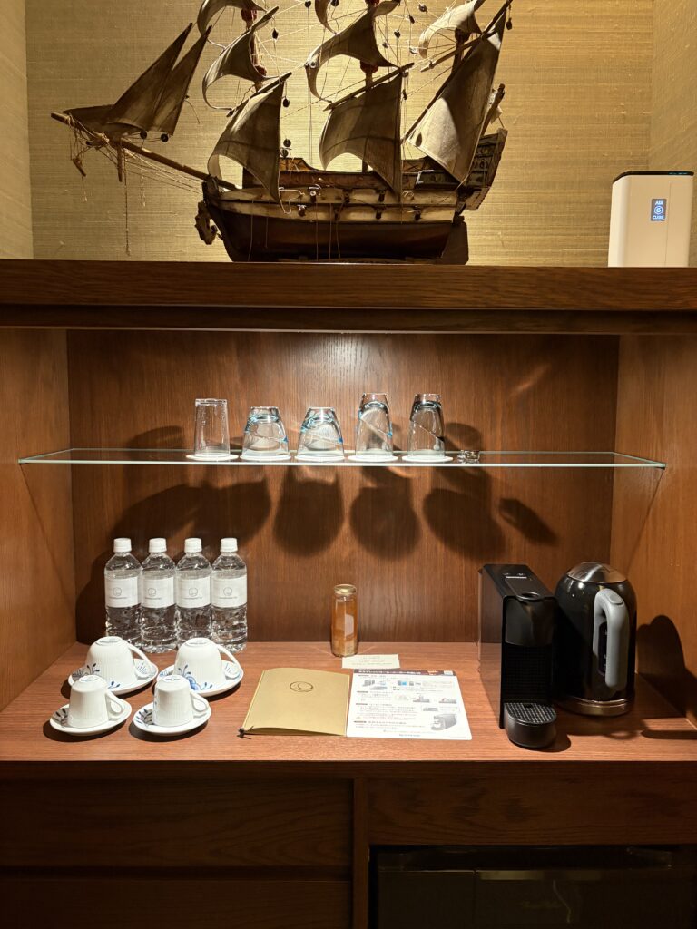 客室全体は、木の温もりと落ち着いたトーンで統一されています。